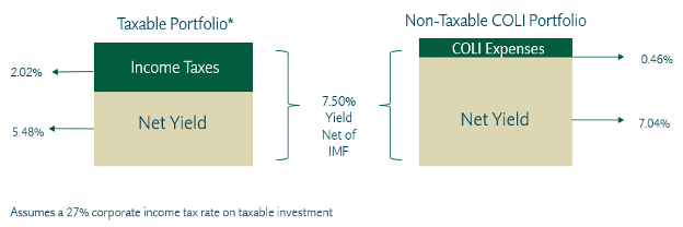 Cost of insurance charges are typically less than income taxes, resulting in an increased yield over a taxable portfolio.
