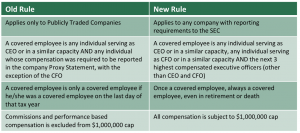 This alert serves as part two of a two-part alert regarding changes to section 162(m) of the IRS tax code. Part two focuses on recommended steps to maintain and maximize grandfathered compensation, particularly in Non-Qualified Deferred Compensation (NQDC) Plans. If you have not read part one of this notice, please visit the Mullin Barens Sanford Financial website here to familiarize yourself with the law changes. The chart below provides a brief comparison of section 162(m) before and after the rule change.
